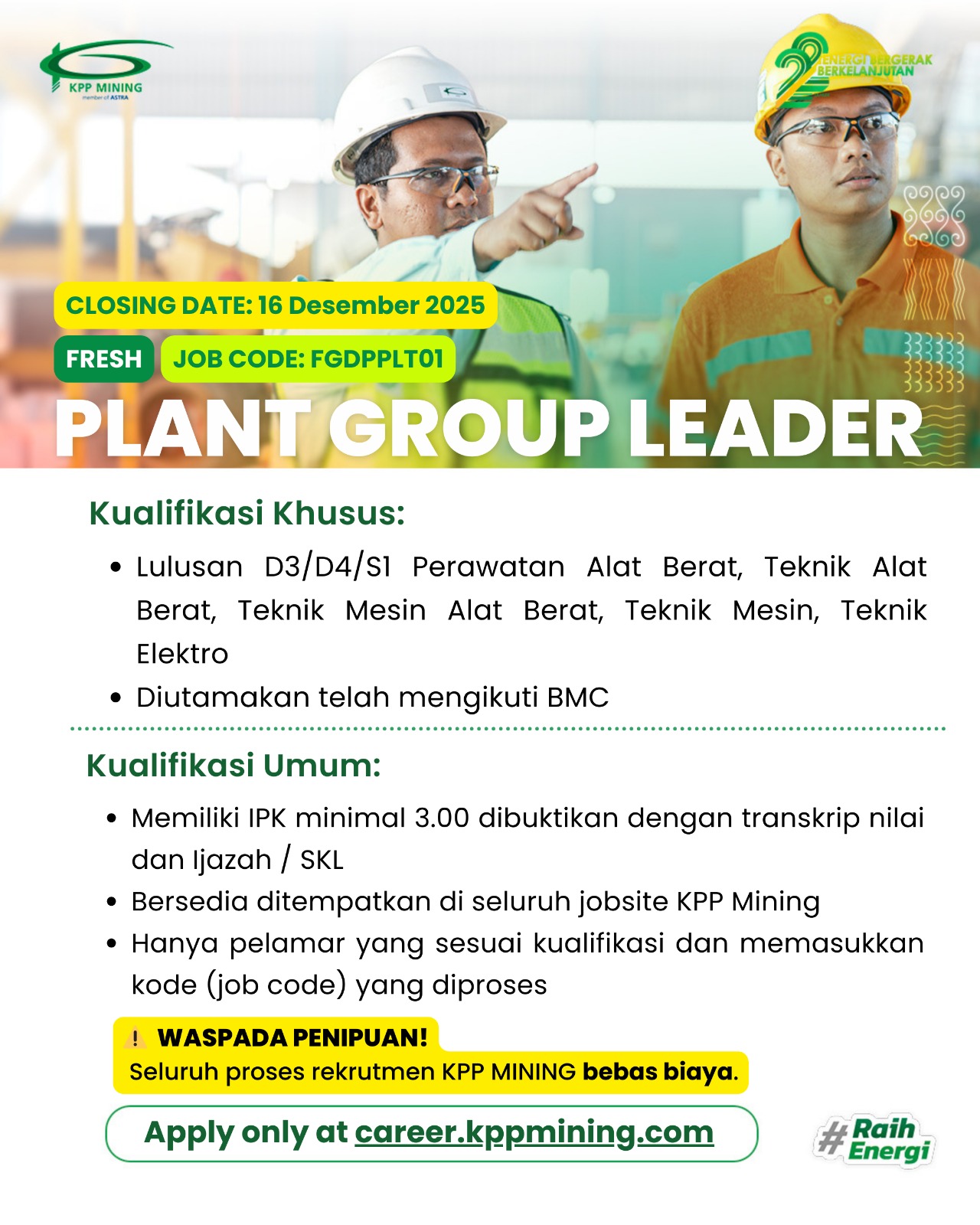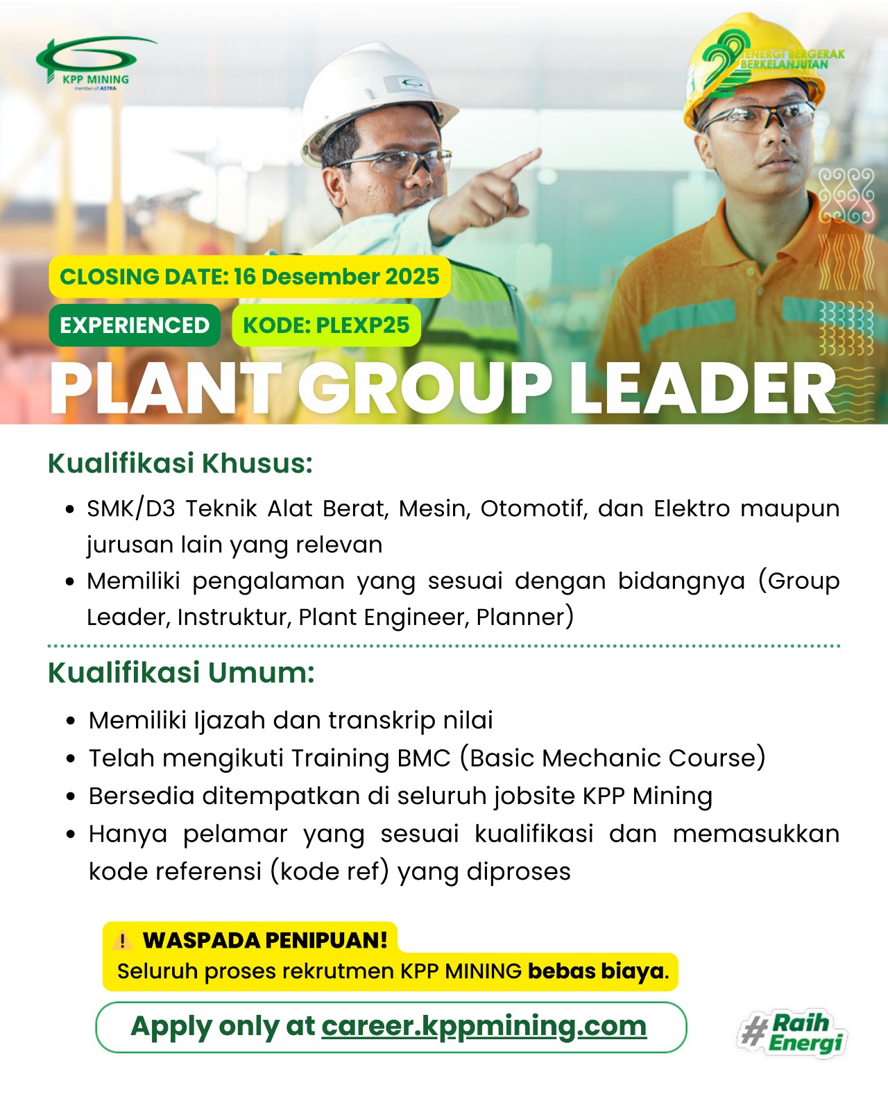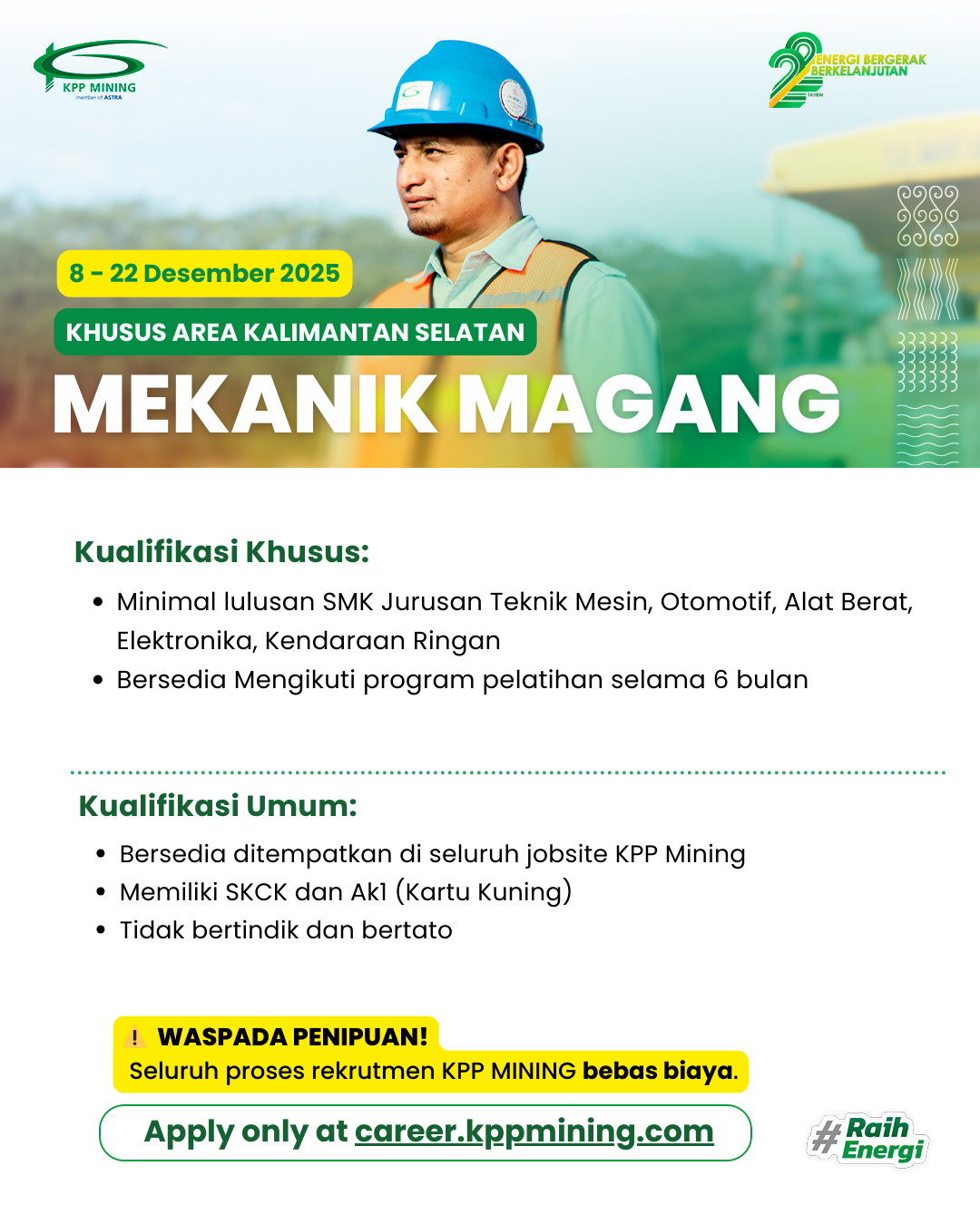 4 Desember 2025 | Mekanik Magang (Khusus Area Kalimantan Selatan) 8-22 Desember 2025